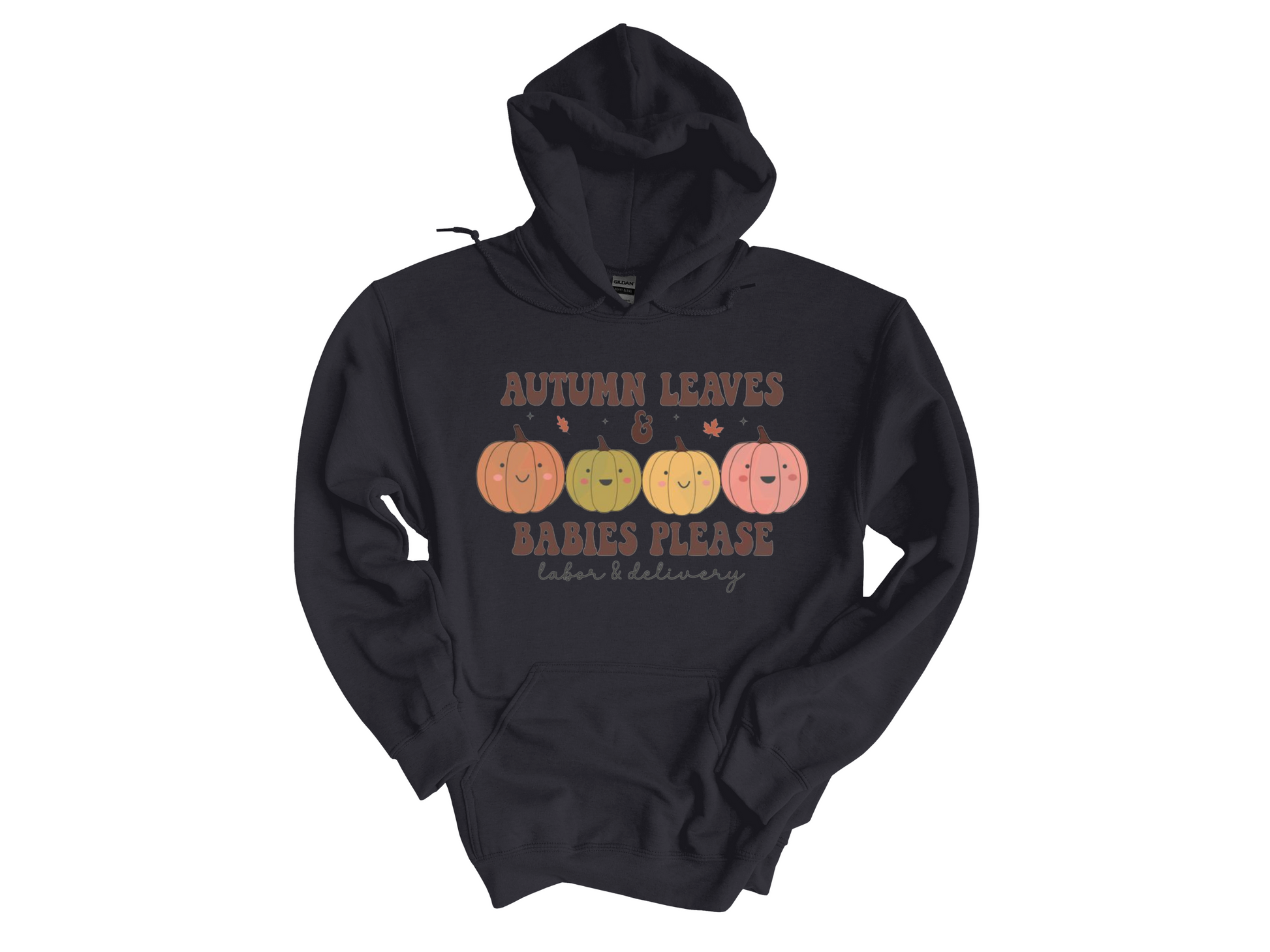 Celebrate your love for fall and your passion for caring for little ones with our Autumn Leaves & Babies Please sweatshirt. Designed with soft, cozy fabric and a cheerful pumpkin design, this sweatshirt is perfect for nurses in labor & delivery, maternity staff, or anyone who adores the season of pumpkins and babies.